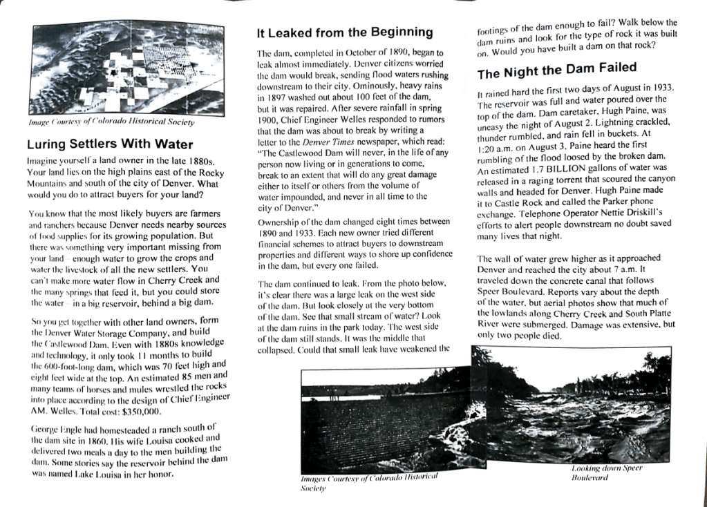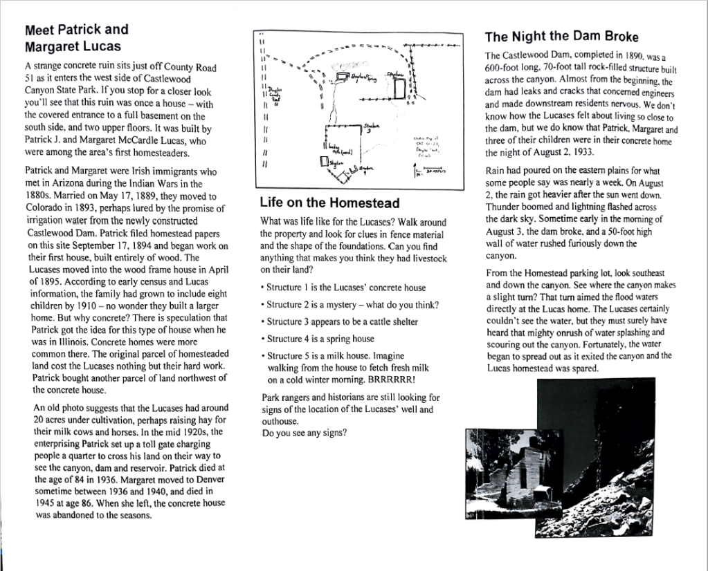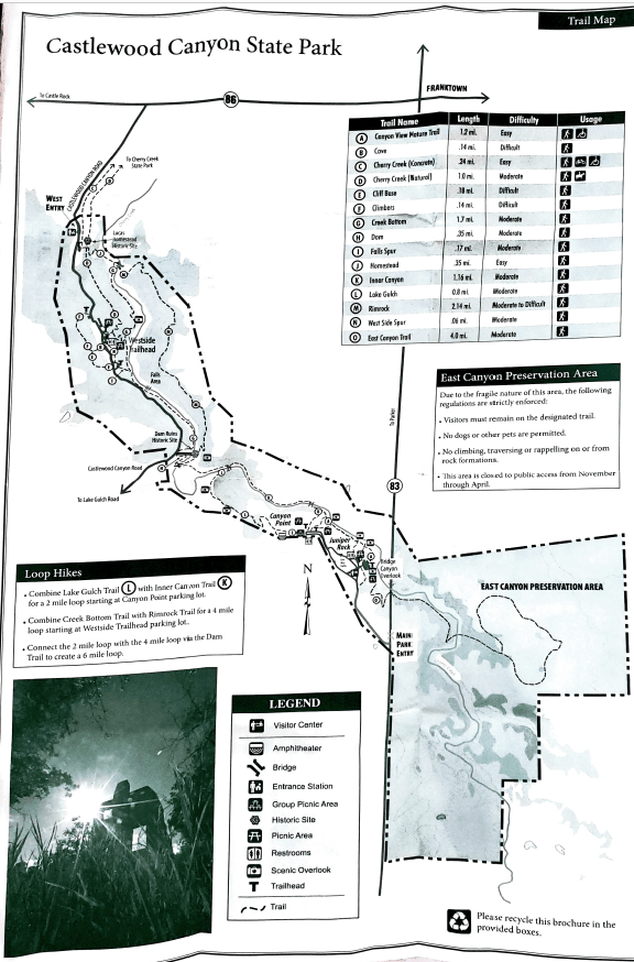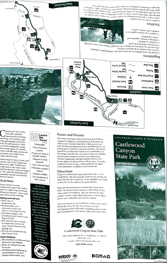 Castlewood Canyon SP For reference purposes, the below informational documents were retrieved from the visitor center at Castlewood Canyon SP on 02/06/22 and are a publication of the Colorado Parks and Wildlife. Like Loading...